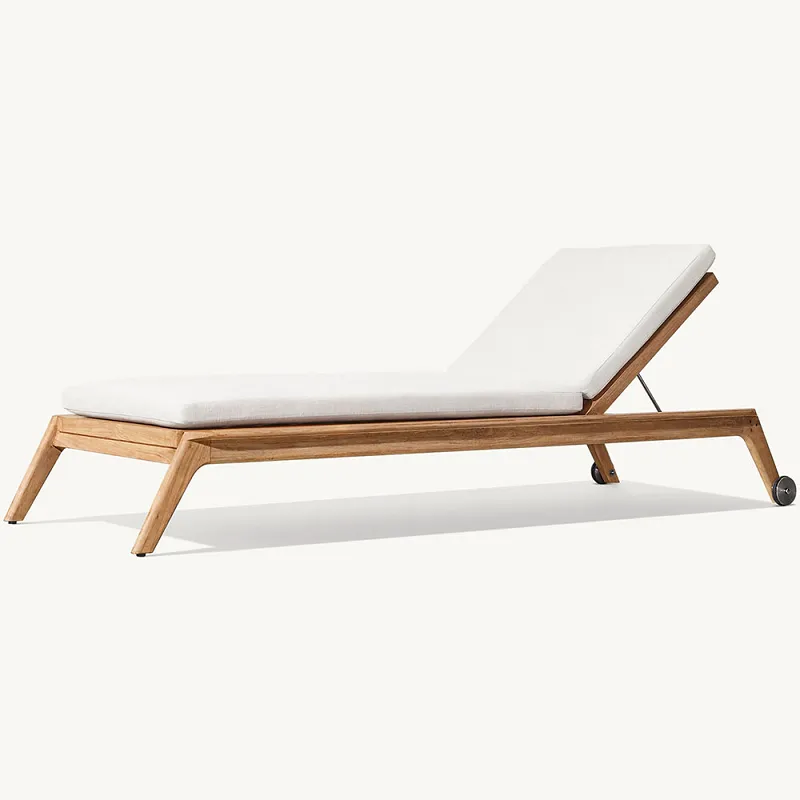 চাকার সঙ্গে সেগুন লাউঞ্জ চেয়ার