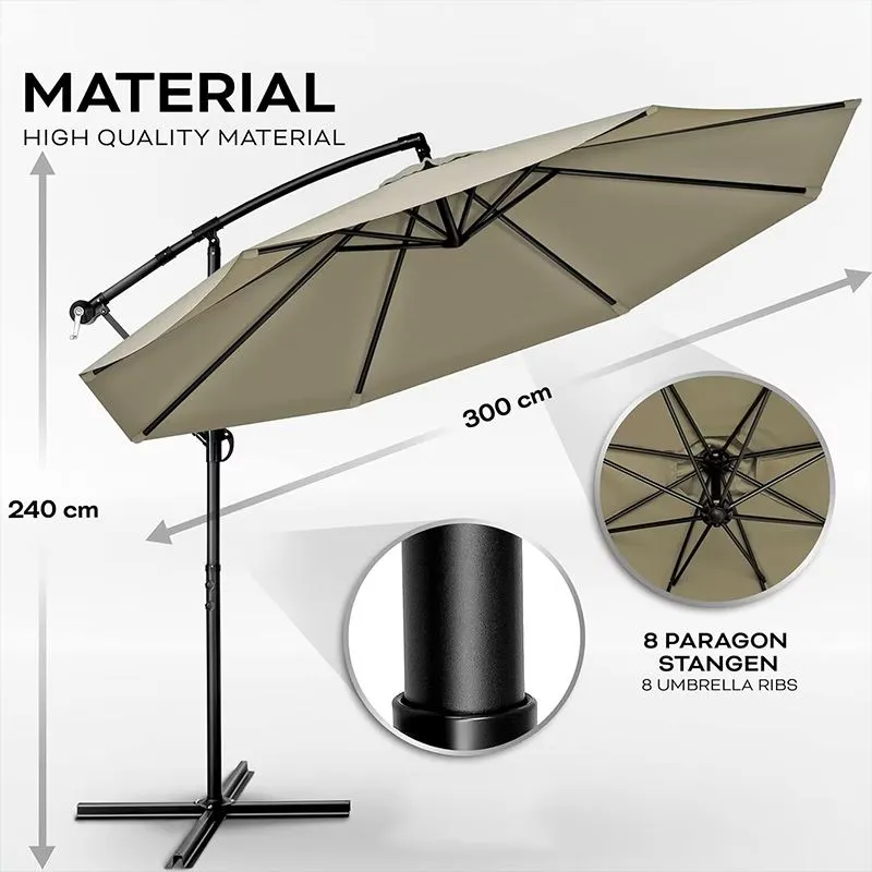 চীনের ঝেজিয়াং-এ তৈরি, এই ক্যান্টিলিভার প্যারাসল শক্ত স্টেইনলেস স্টীল থেকে তৈরি করা হয়েছে, যে কোনও আবহাওয়া তার পথে চলুক তা পরিচালনা করার জন্য তৈরি করা হয়েছে। 15-মিটার ব্যাসার্ধ এবং একটি ক্লাসিক বৃত্তাকার নকশা সহ, এটি কঠোর সূর্যালোককে আটকায় এবং আপনার স্থানকে ঠান্ডা এবং আরামদায়ক রাখে৷
