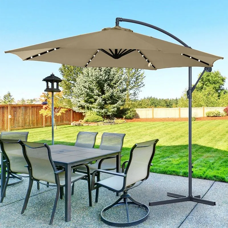 ইউভি সুরক্ষা ক্যান্টিলিভার প্যারাসোল সাধারণত দিনের বেলা তাদের ভূমিকা পালন করে এবং রাতে সজ্জা হিসাবে ব্যবহার করা যেতে পারে। পার্টিতে বা সমুদ্রতীরে বাতাস উপভোগ করুন। নরম আলো আকাশের তারার প্রতিধ্বনি করে, যা সুন্দর। লাইট শুধুমাত্র রাতে চাক্ষুষ আবেদন বাড়ায় না, কিন্তু বাইরের জমায়েত বা অবসর সময়ে আরাম এবং সুবিধা যোগ করে। ব্যবহারকারীরা তাদের ব্যক্তিগত পছন্দ অনুযায়ী ভেন্যু এবং বায়ুমণ্ডলের জন্য উপযোগী বিভিন্ন ছাতার রং বেছে নিতে পারেন, যাতে প্যারাসল দিন ও রাতের পরিবেশের বিভিন্ন চাহিদা মেটাতে পারিপার্শ্বিক পরিবেশে পুরোপুরি একীভূত হতে পারে।