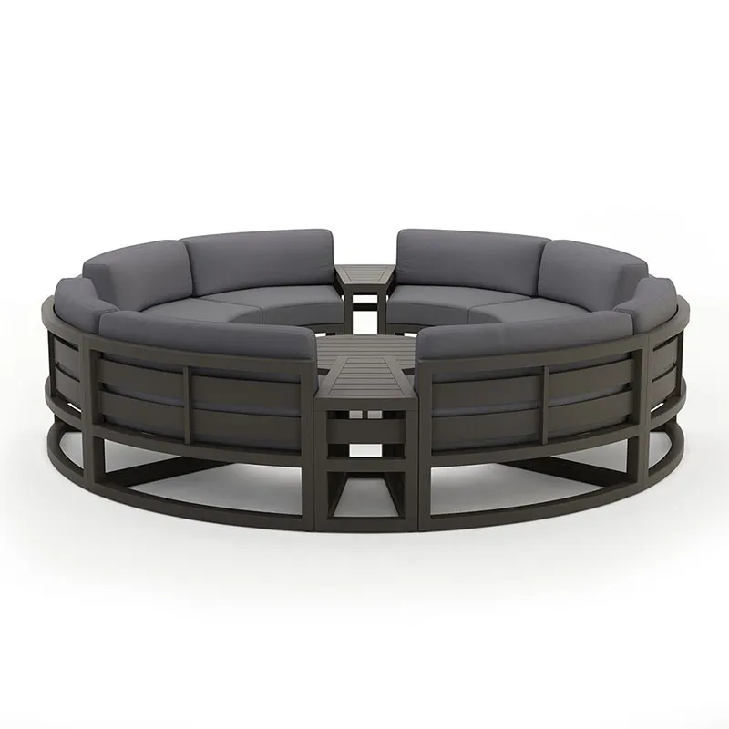এই বহিরঙ্গন পালঙ্কের বৃত্তাকার নকশা শুধুমাত্র দৃশ্যত আকর্ষণীয় নয় কিন্তু কার্যকরীভাবে উদ্ভাবনীও। এটি প্রত্যেককে একে অপরের মুখোমুখি হওয়ার অনুমতি দিয়ে সামাজিক মিথস্ক্রিয়াকে উত্সাহিত করে, এটিকে সমাবেশের জন্য নিখুঁত করে তোলে। একটি পরিশীলিত ফোকাল পয়েন্ট যোগ করার সাথে সাথে আপনার বসার জায়গাকে সর্বাধিক করে, প্রশস্ত প্যাটিও থেকে শুরু করে অন্তরঙ্গ বাগানের নুক পর্যন্ত বিভিন্ন বহিরঙ্গন সেটিংসে আকৃতিটি নির্বিঘ্নে ফিট করে।